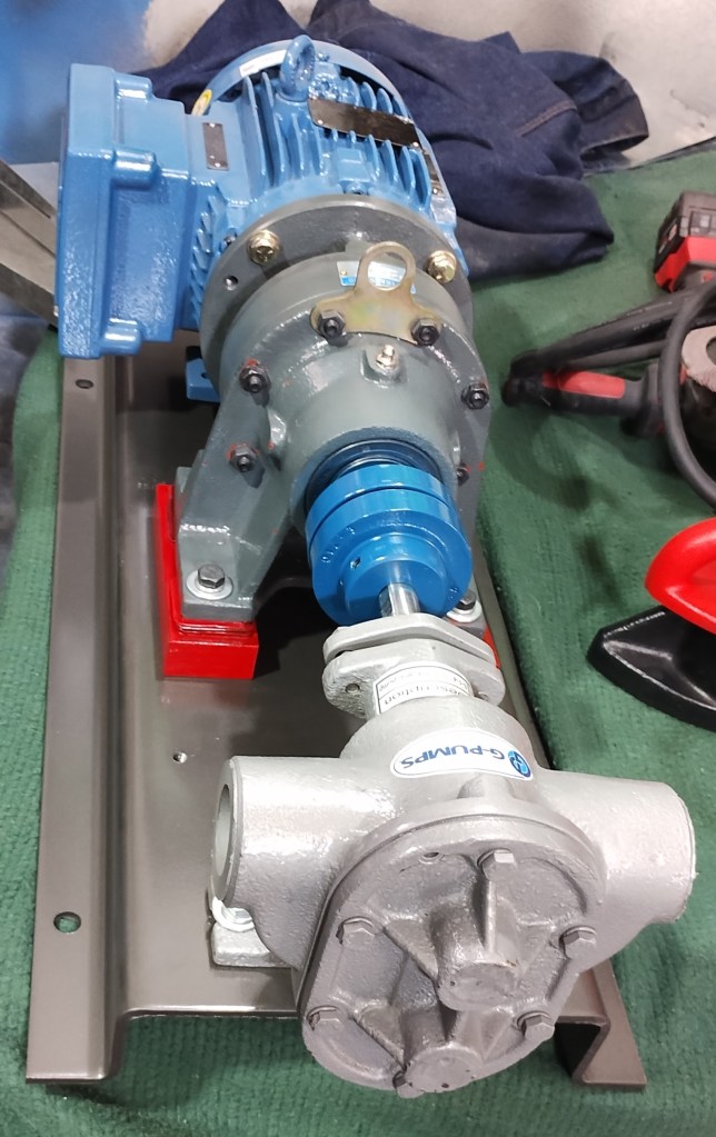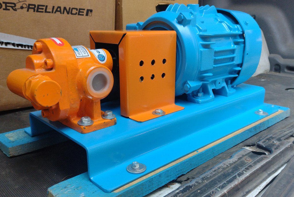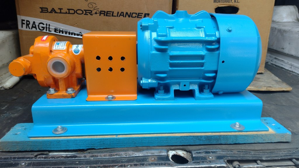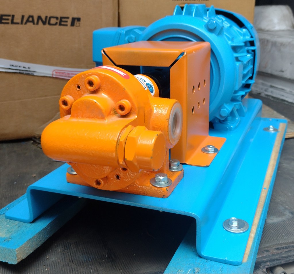 Bomba de desplazamiento positivo con engranes rectos, material de construcción en acero inoxidable 304, empaquetadura estandar, para manejo de una gran variedad de liquidos tales como: aceites, adhesivos, diesel, pinturas, tinta, resinas, etc…