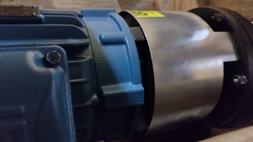 • Manguera de acero inoxidable con sujetador de accionamiento de aluminio en el acoplamiento de bomba y motor.