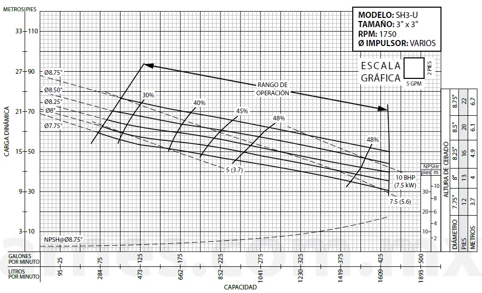 - Carga dinámica total: 40 FT hasta 90 FT.