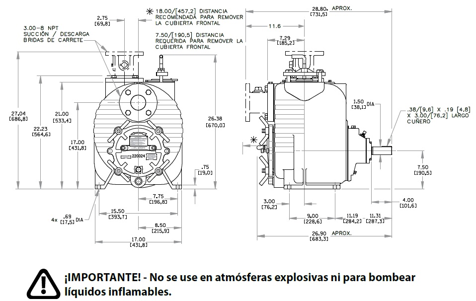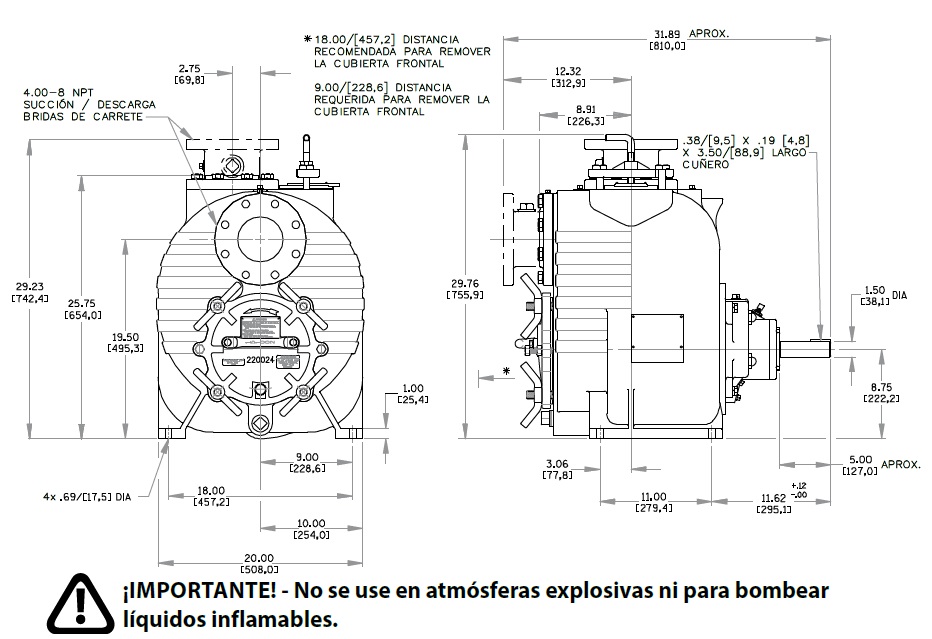 - Cavidad del Sello y lubricación SAE No. 30 aceite sin detergente, la bomba incluye mirillas de aceite.