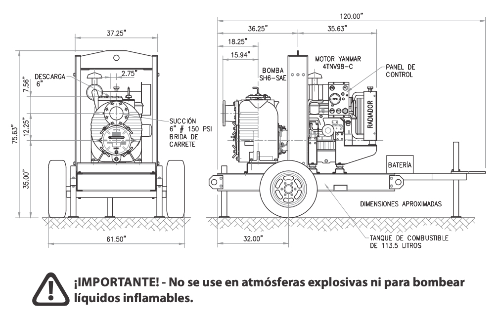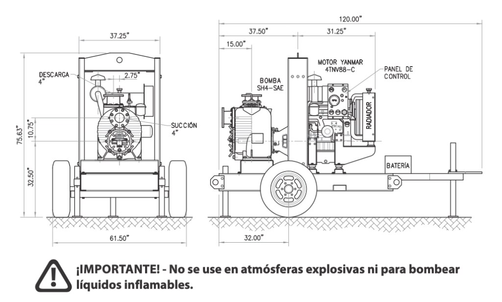 - Motor: se ensambla a motor Yanmar 4TNV48C-DYEM de combustión interna a diésel, de 4 tiempos, enfriado por líquido, Tier 4