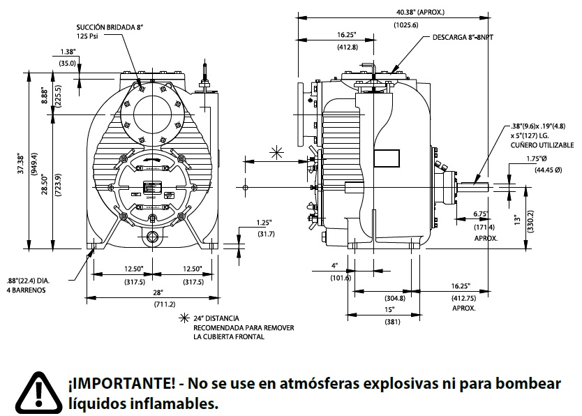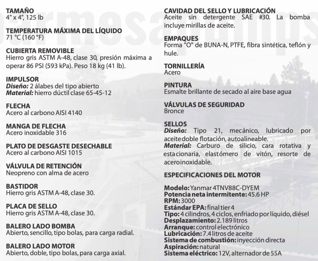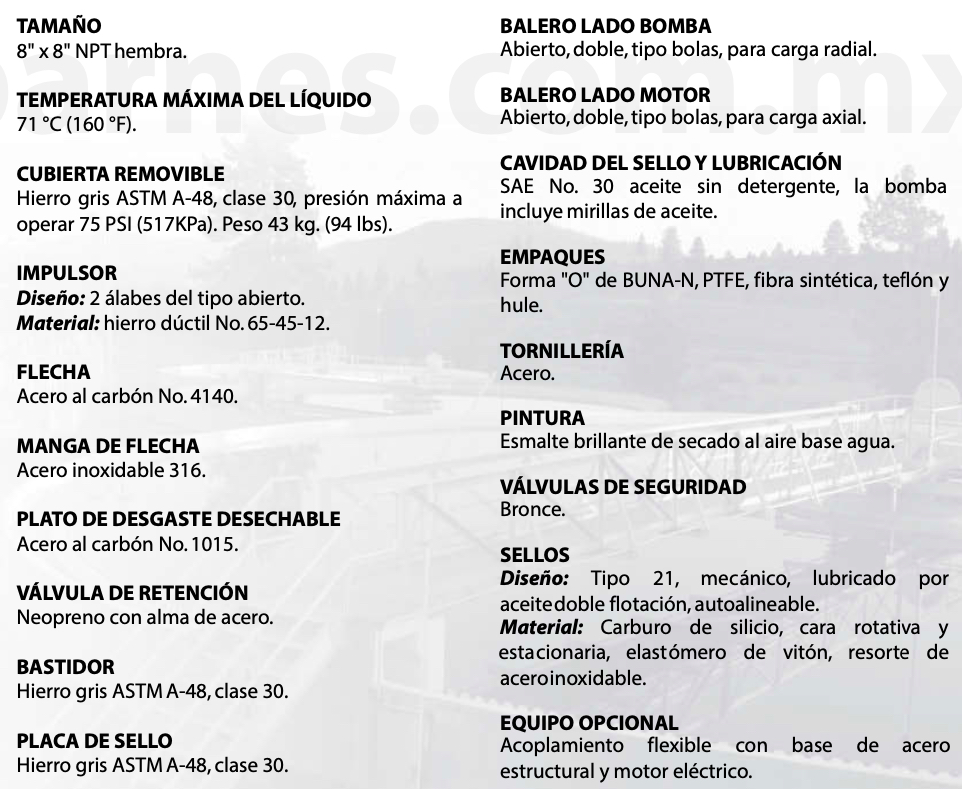 - Impulsor: 2 álabes, tipo abierto. Hierro dúctil #65-45-12.
