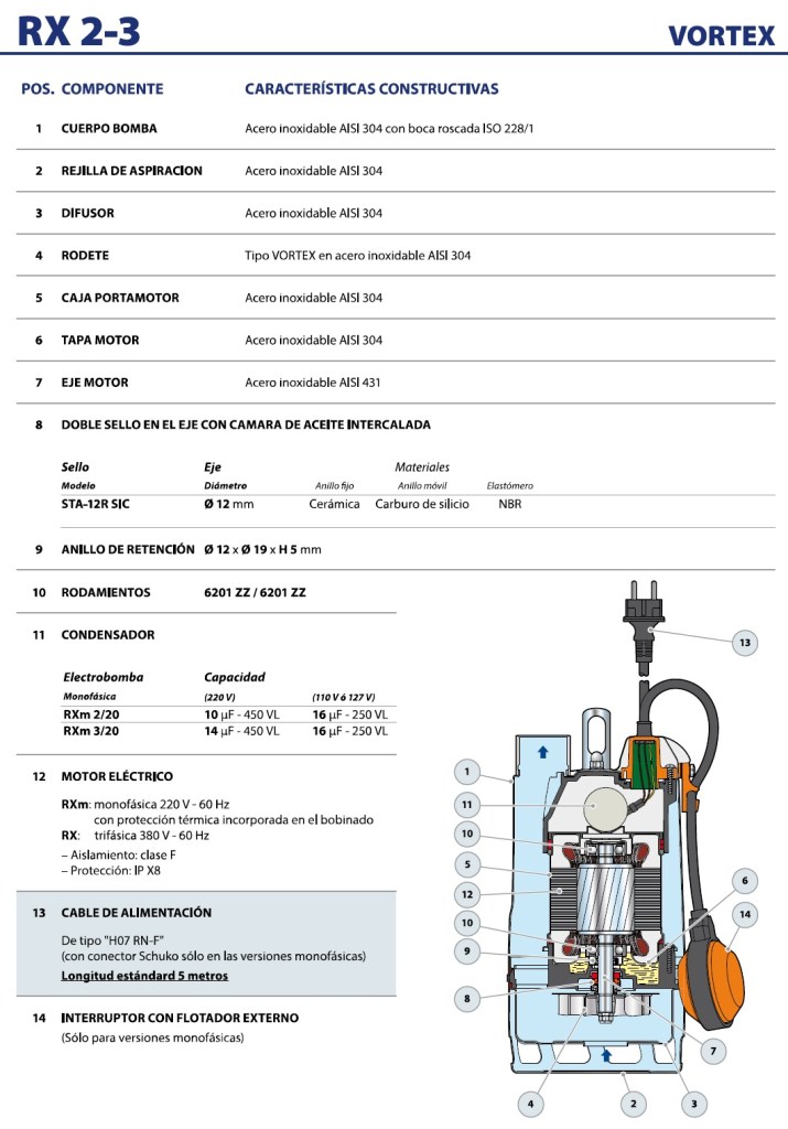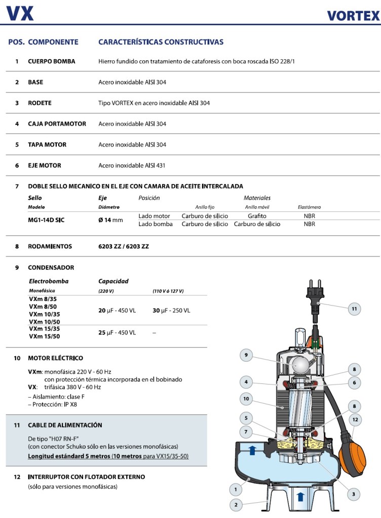 - Electrobombas VX8-10 con cable de alimentación de 10 m.