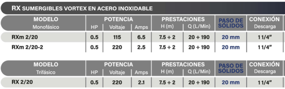 PEDROLLO VX-ST: Modelos disponibles en México.