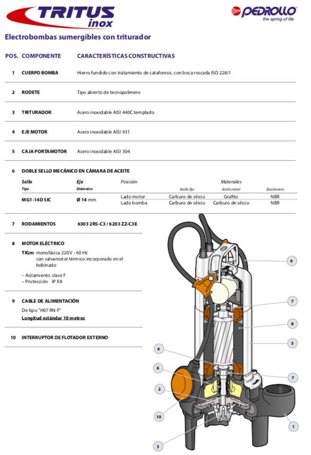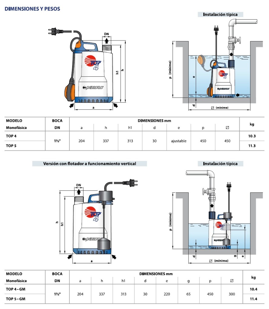CATALOGO FICHA TECNICA PEDROLLO SERIE TOP