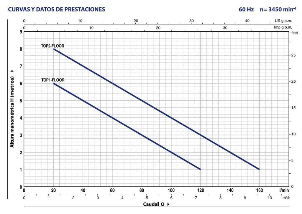 La serie TOP-FLOOR es adecuada para el drenaje de aguas claras sin partículas abrasivas, dado que el equipo fue principalmente diseñado para un uso doméstico. Por ello, tiene la capacidad de aspirar agua desde 2 mm de fondo apoyando en situaciones de emergencia, en pequeños ambientes inundados y en todas aquellas aplicaciones donde se requiera la máxima capacidad de vaciado.