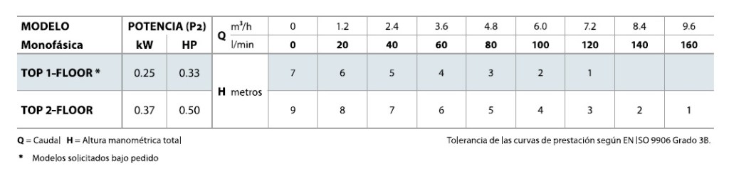 CATALOGO FICHA TECNICA PEDROLLO SERIE TOP FLOOR