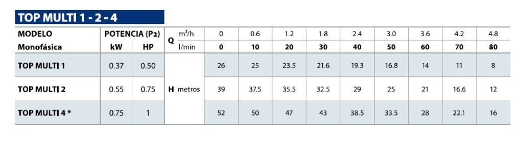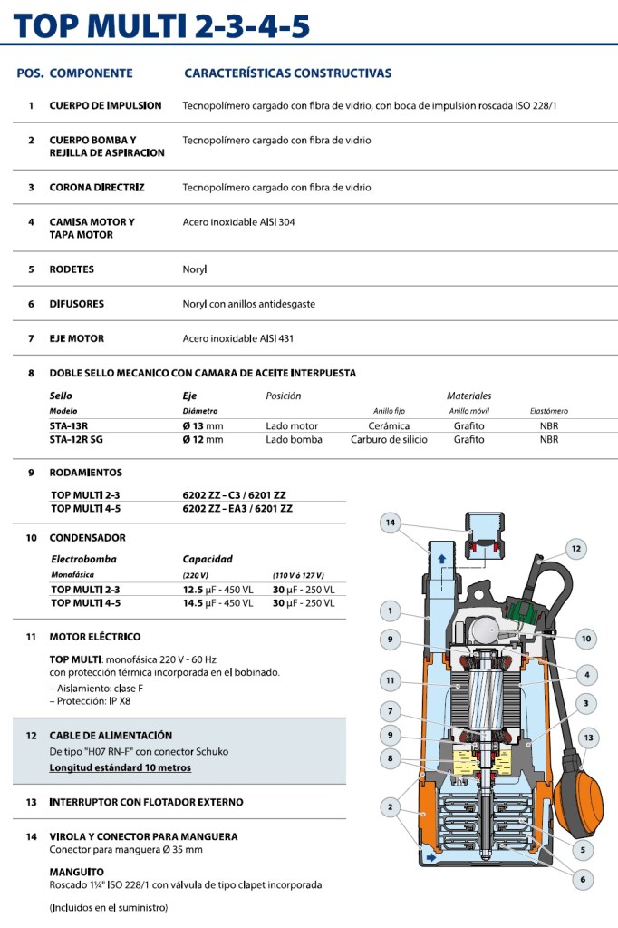 CATALOGO FICHA TECNICA PEDROLLO SERIE TOP MULTI