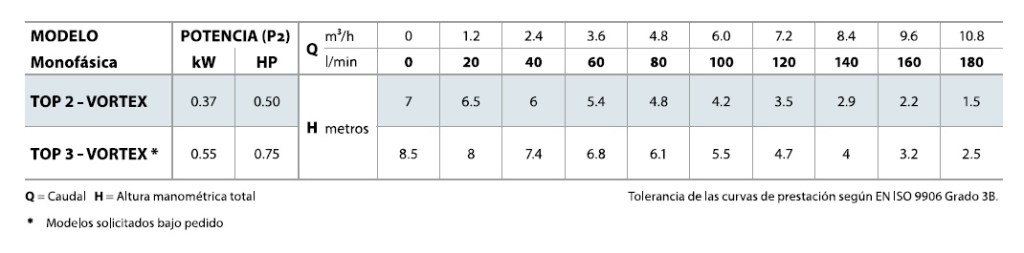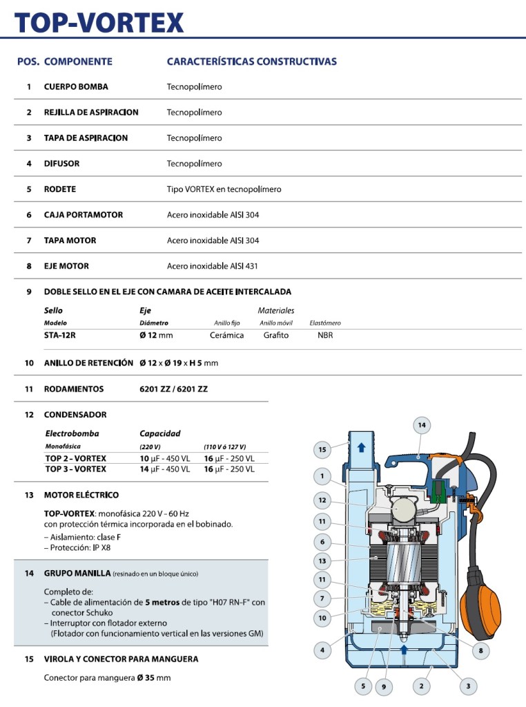 CATALOGO FICHA TECNICA PEDROLLO SERIE TOP VORTEX