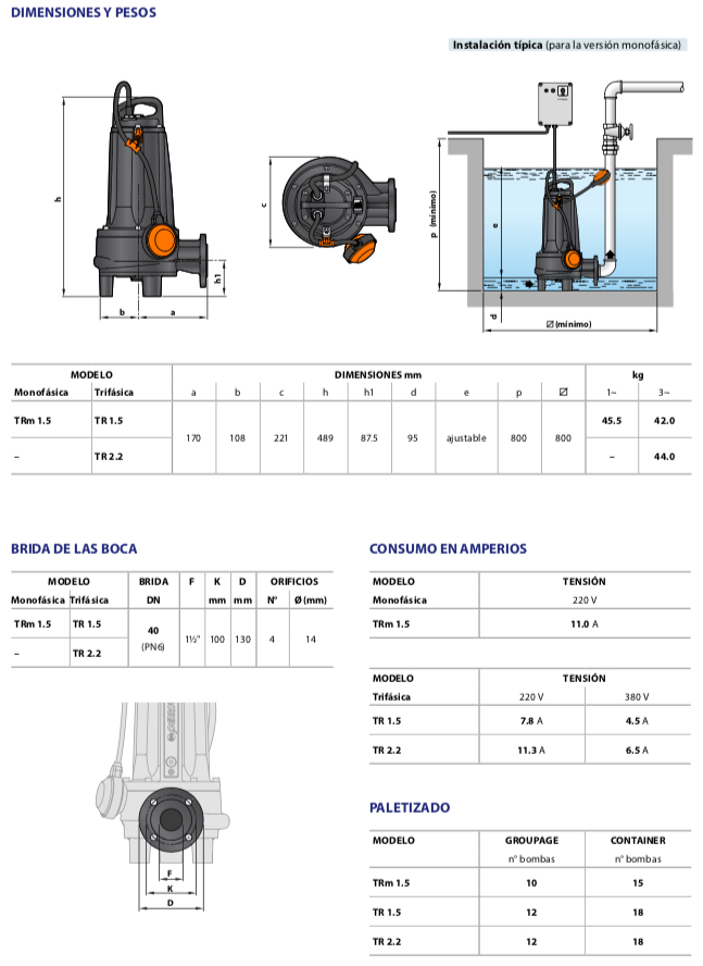 - Se recomiendan en todas las instalaciones para el bombeo de aguas negras con sólidos en suspensión hasta un diámetro de 65 mm.