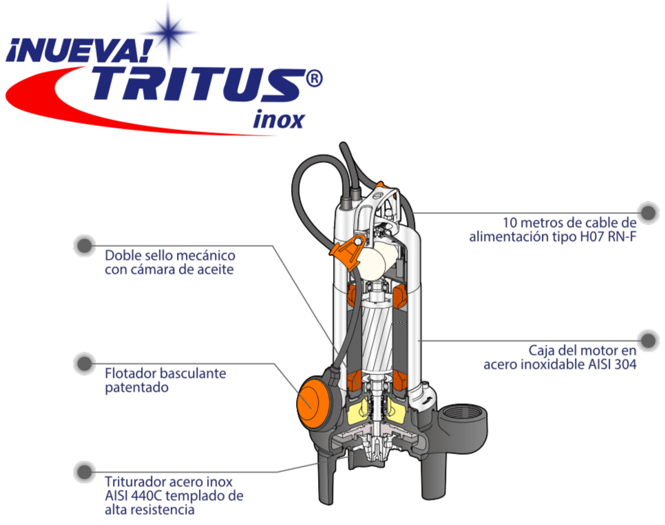 TRITUS INOX es una electrobomba sumergible con triturador, versátil y fiable, utilizada para mover aguas residuales domésticas, en particular aguas negras de inodoros.