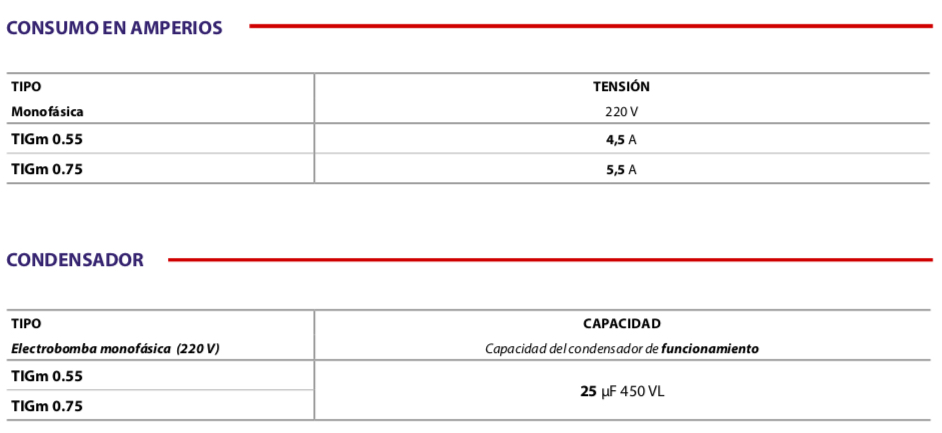 - Electrobomba monofásicas sin interruptor y flotador externo.