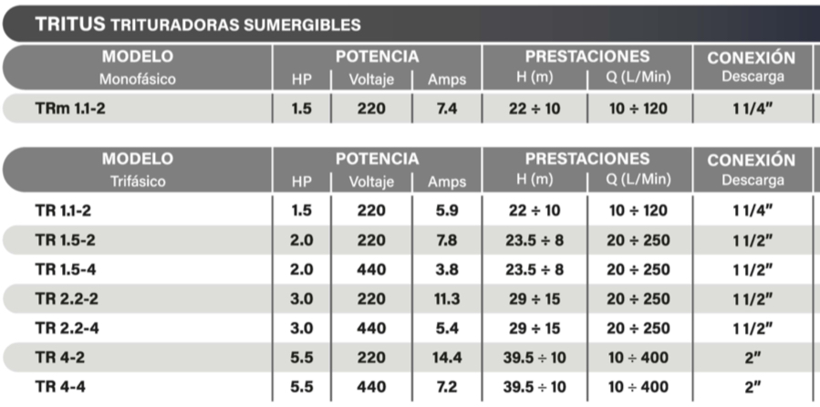 PEDROLLO TRITUS: Modelos disponibles en México.