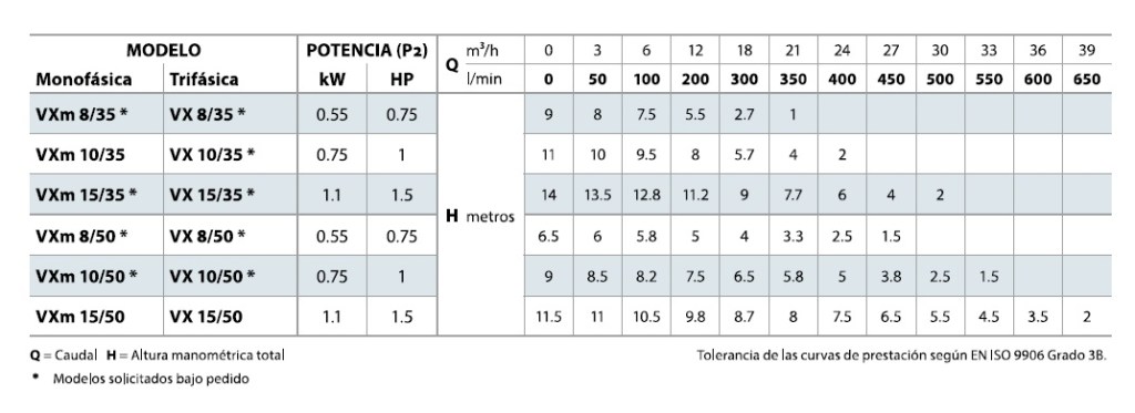 CATALOGO FICHA TECNICA PEDROLLO SERIE VX