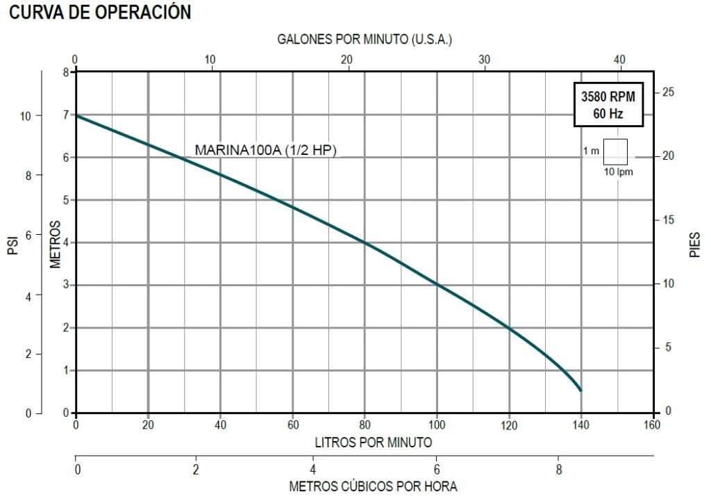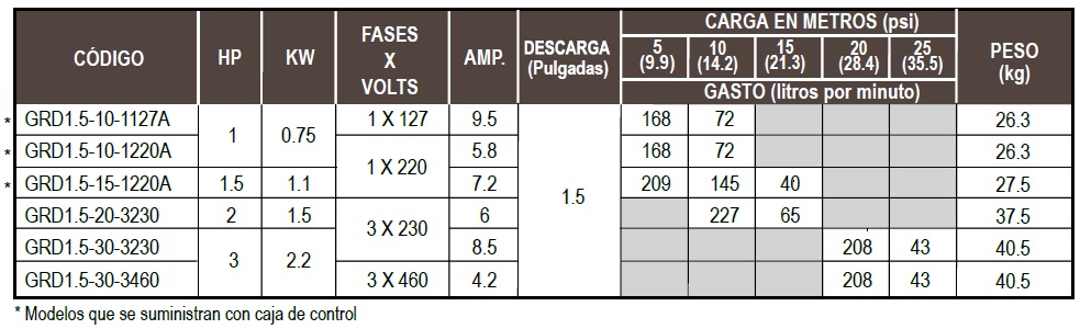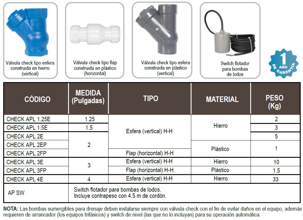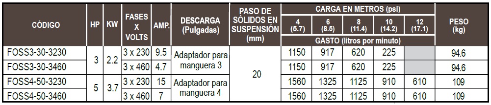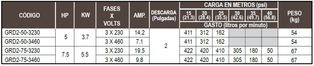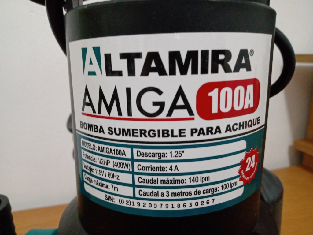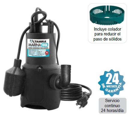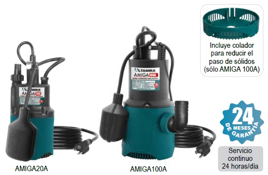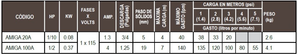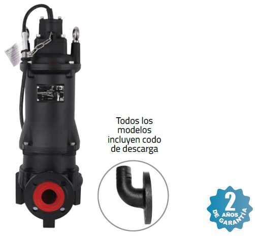 - Incluye 7.5 m de cable sumergible tomacorriente que permite un servicio continuo siempre y cuando la motobomba este totalmente sumergida.