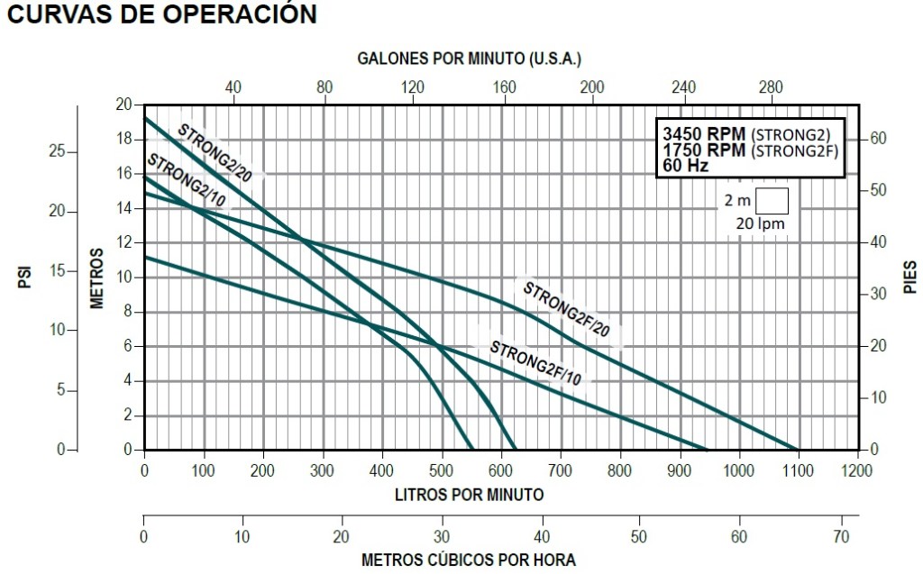STRONG 2: Dos polos (3450 rpm) con aislamiento clase F para alta temperatura.