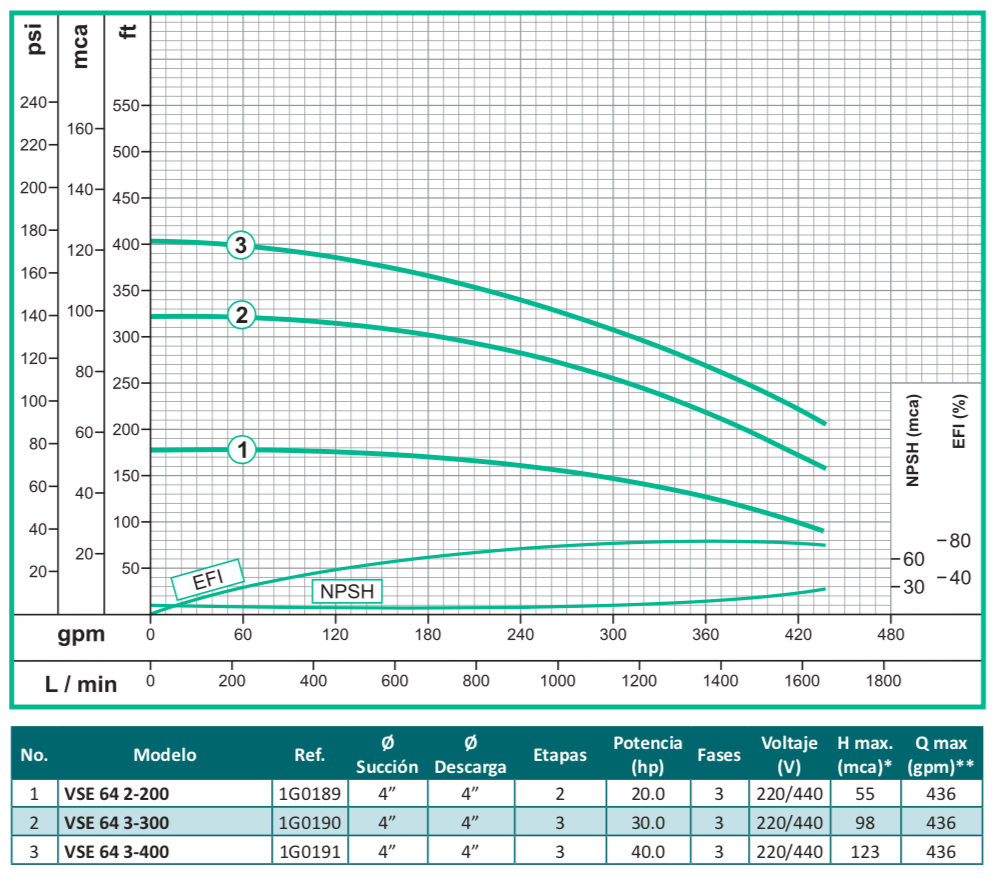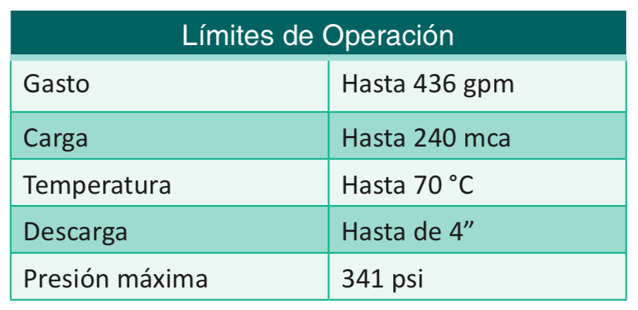 Carga dinámica hasta 240 mca Gasto hasta 436 gpm