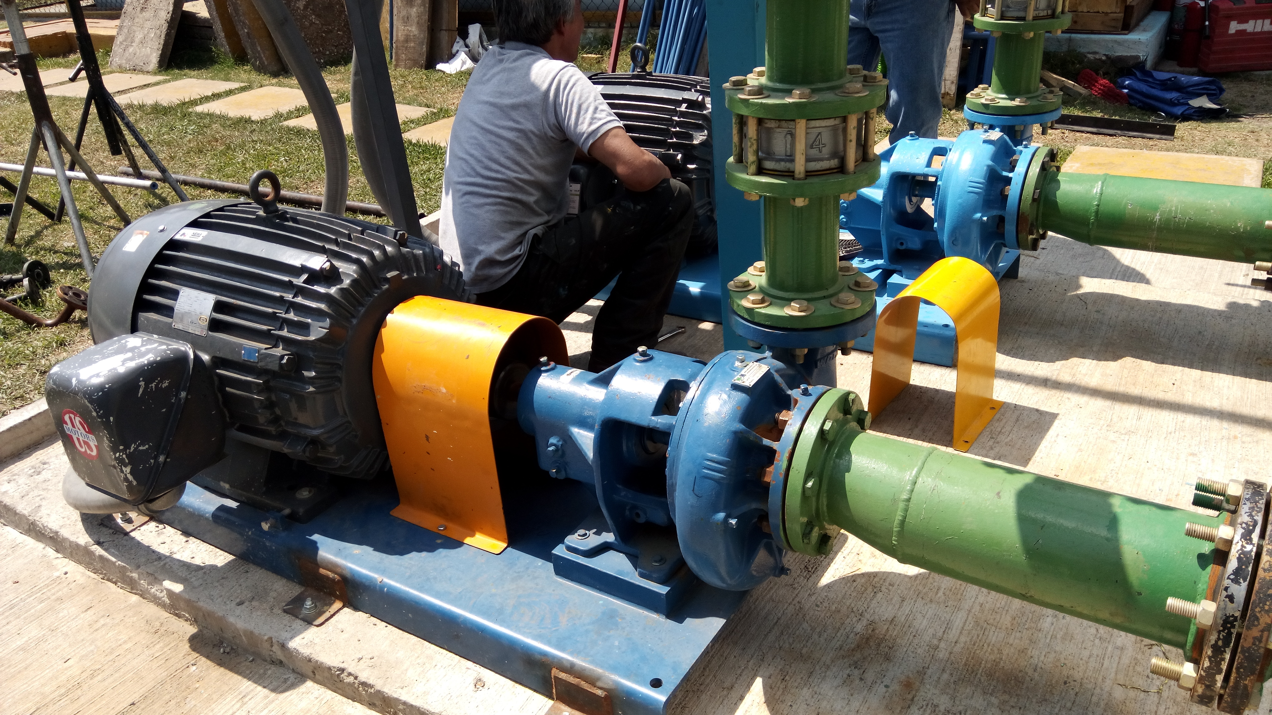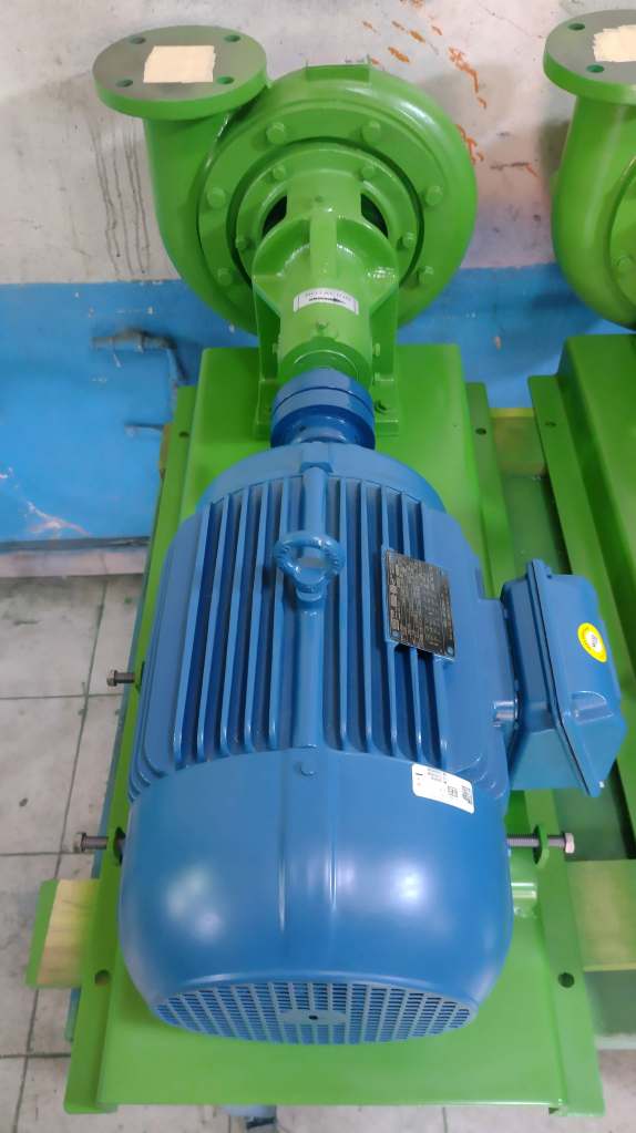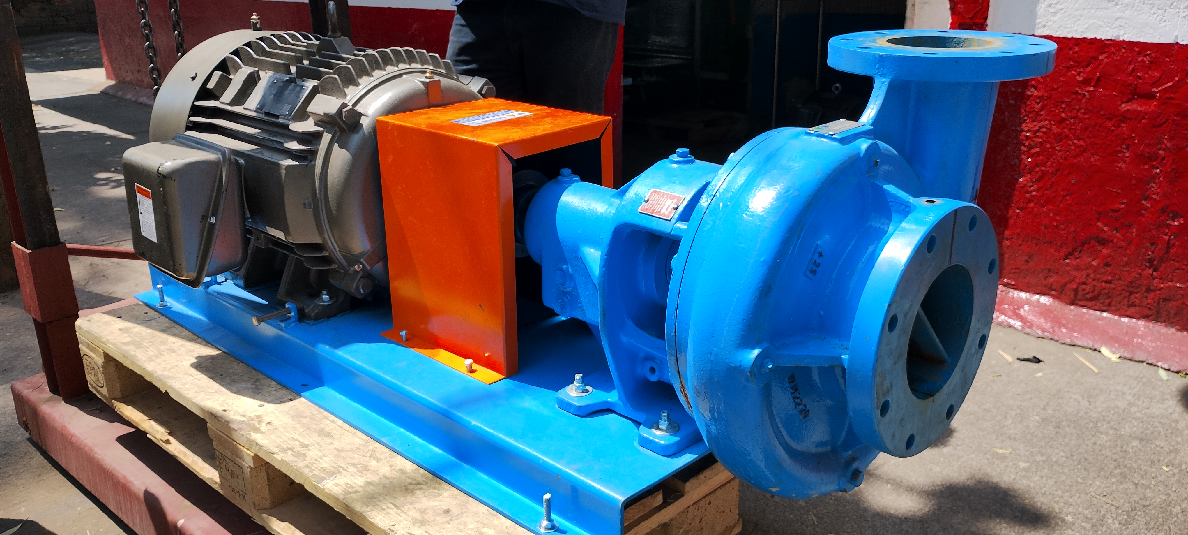 Su proceso de acoplamiento es mediante el uso de un cople felxible tipo sure flex o tipo omega con espaciador a motor eléctrico horizontal trifásico totalmente cerrado con ventilación exterior eficiencia premium. El equipo es montado y alineado sobre una base metálica troquelada tipo canal invertida sombrero o estructural, cuenta con dados de ajuste para la base del motor, tornillería de grado y pintura, incluye guarda cople tipo omega cerrado rectangular, todo el ensamble cumple con la norma ANSI B73.1