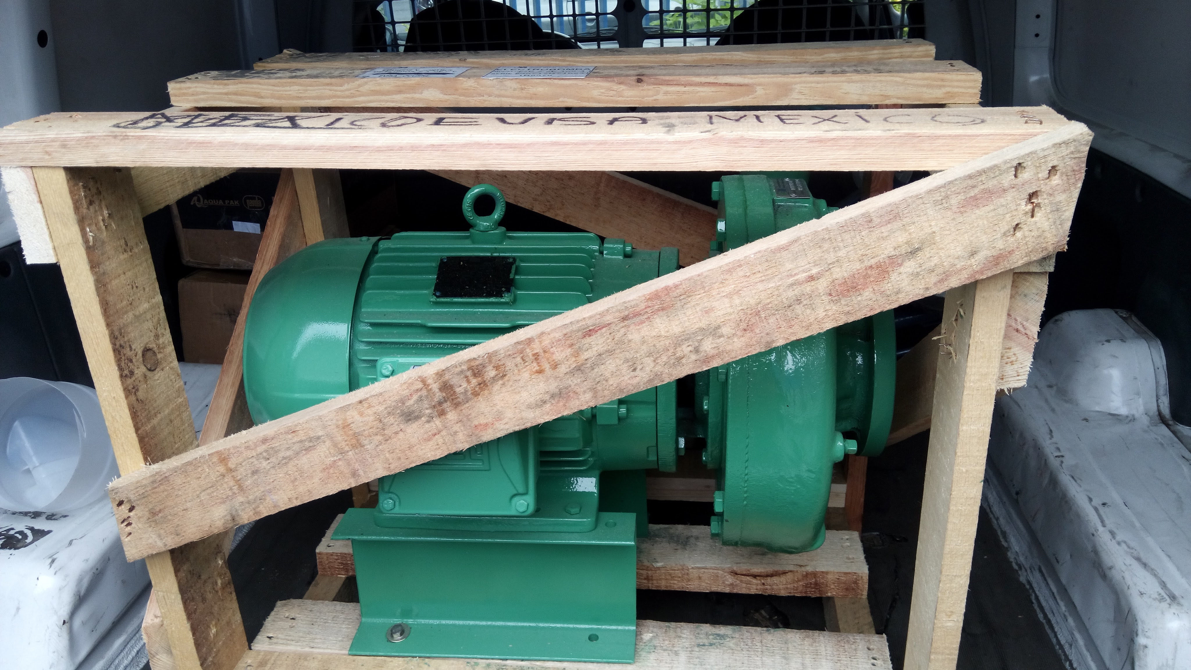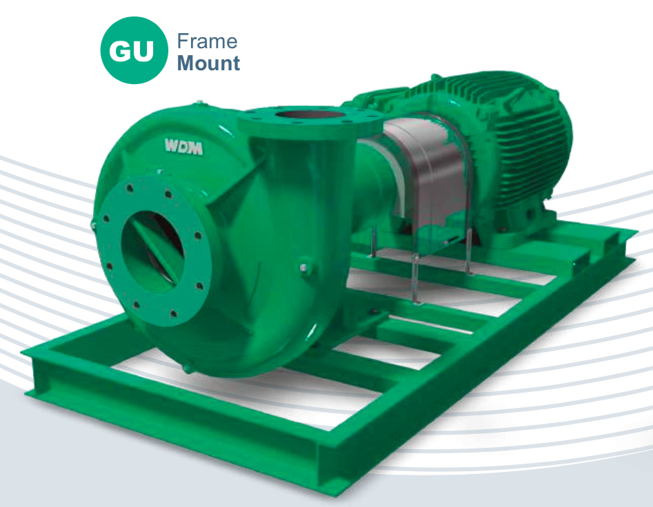 Bomba centrifuga horizontal de transmisión universal marca WDM Serie GU. Su material de construcción es en hierro fundido con un impulsor, tipo cerrado, del mismo material con opción en acero inoxidable 316SS. De igual manera, dispone con un sello mecánico estándar, el cual puede estar disponible en carbón, cerámica, buna y acero inoxidable.