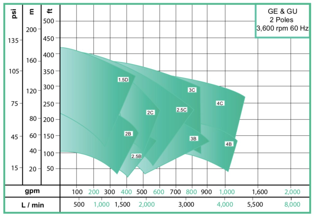 Caudal: hasta 4,150 gpm (Galones por minuto).