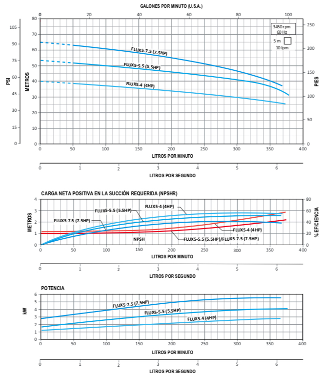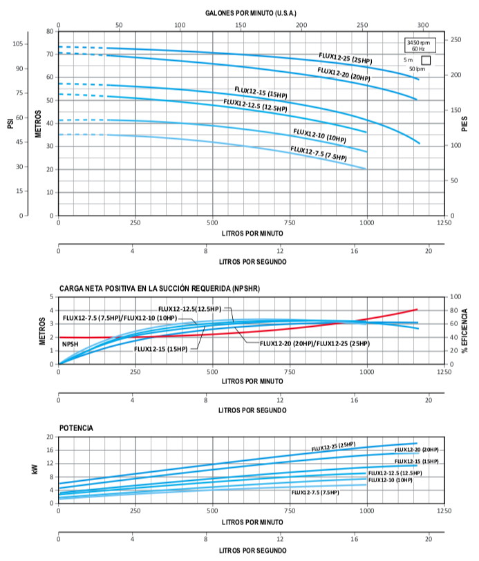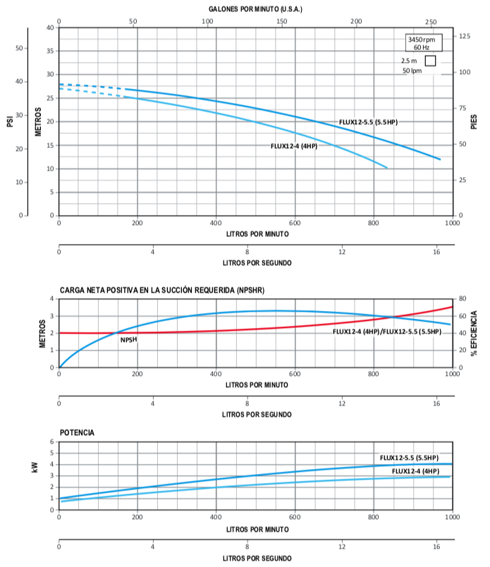 Curva de operación FLUX12 (4 A 5.5 HP):