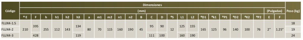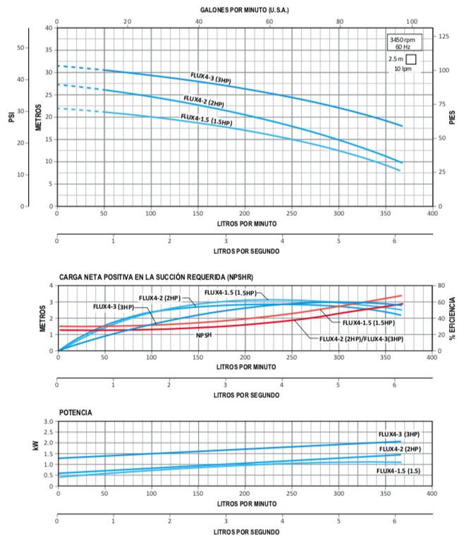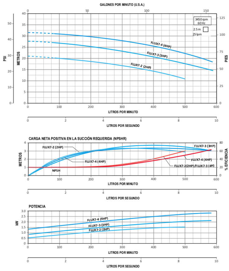 Curva de operación FLUX7 (2 HP A 4 HP):