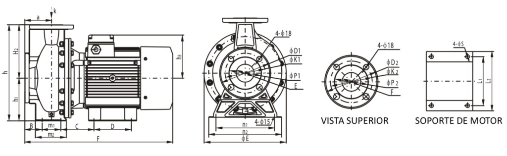 - Cuerpo de bomba tipo voluta para una máxima eficiencia.