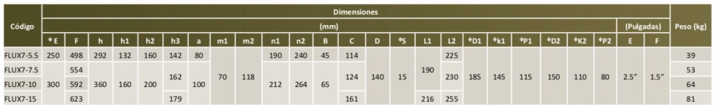 Curva de operación FLUX7 (5.5 HP A 15 HP):
