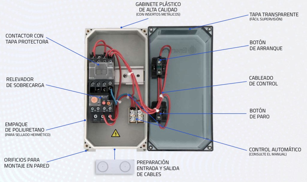- Incluye: contactor, relevador de sobrecarga y botones Enerwell®