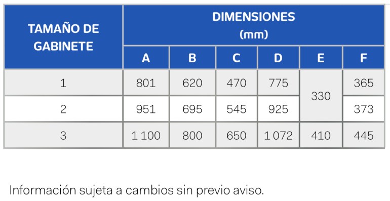 - Gabinete metálico con tornillería en acero inoxidable, preparado con perforaciones pretoqueladas (knock-outs) para una rápida y segura instalación.