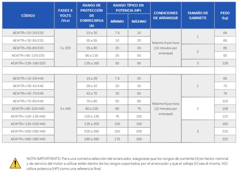 - Ideal para motores trifasicos, ya que proporciona protección avanzada desde 10A hasta 390A, en aplicaciones de 220 Vca o 440 Vca (consulte especificaciones).