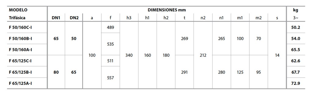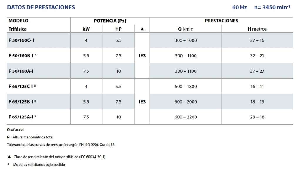 - Presión máxima en el cuerpo bomba 10 bar (PN10).