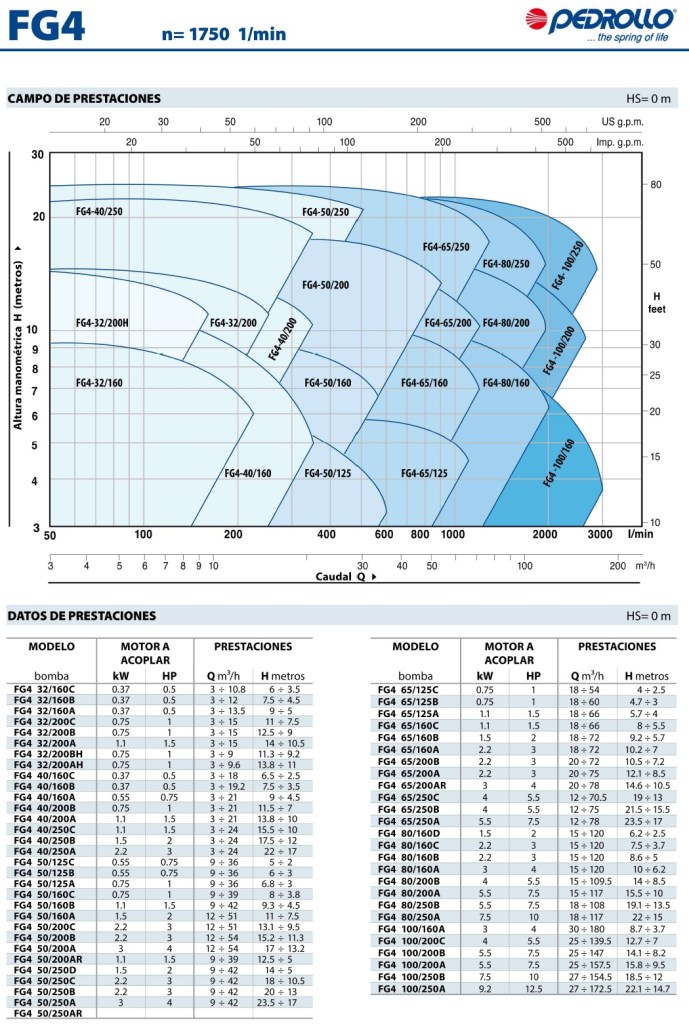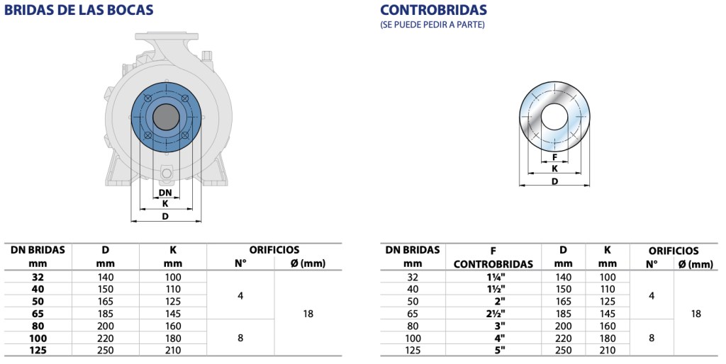 - Presión máxima en el cuerpo bomba 10 bar (PN 10)