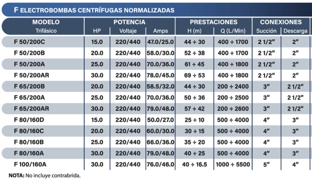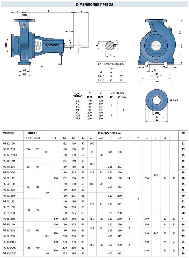 Bombas centrífugas normalizadas EN 733. Pueden aplicarse para el abastecimiento hídrico, instalaciones de lavado, presurización, instalaciones contra-incendio, irrigación, industria, circulación del agua en instalaciones de climatización, agricultura.