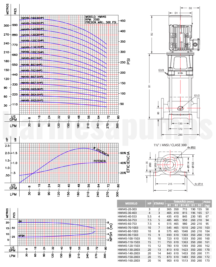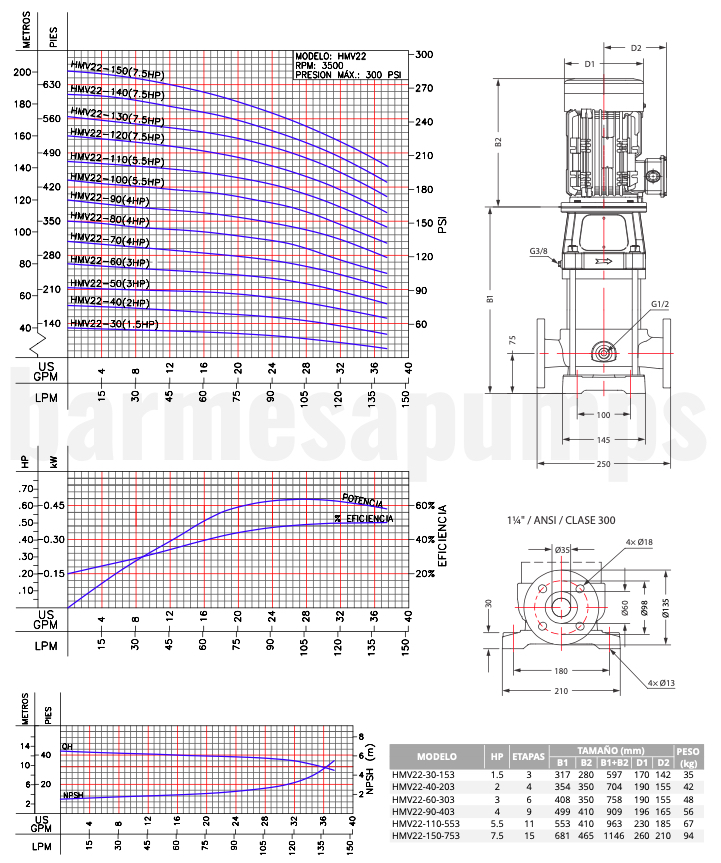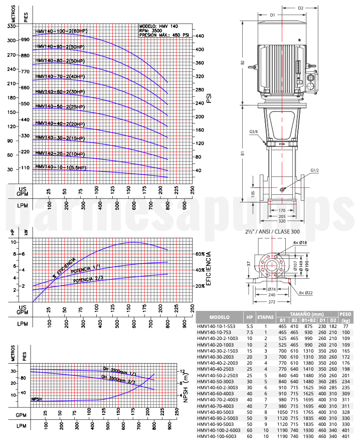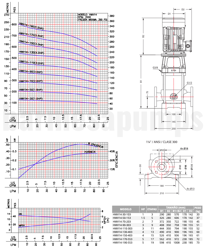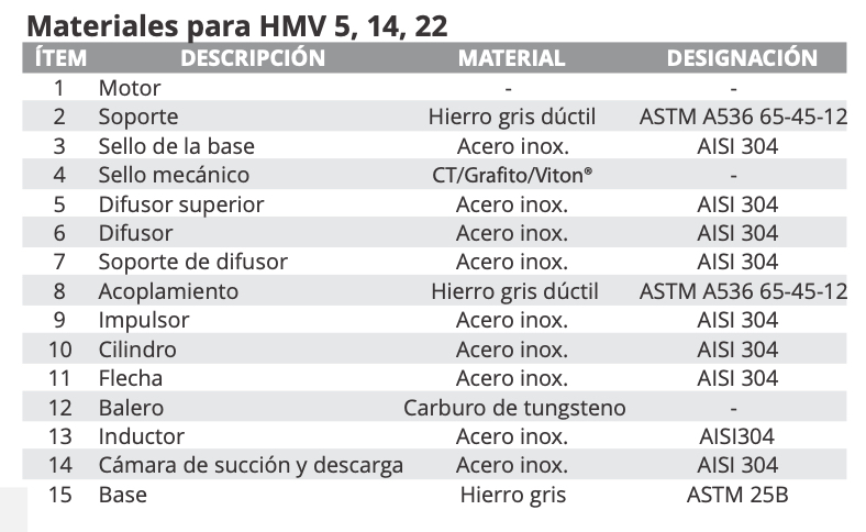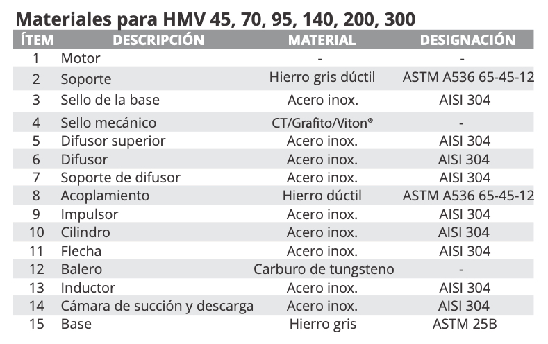 HMV5, HMV14, HMV22, HMV45, HMV70, HMV95, HMV140, HMV200, HMV300, INFORMACIÓN TÉCNICA.